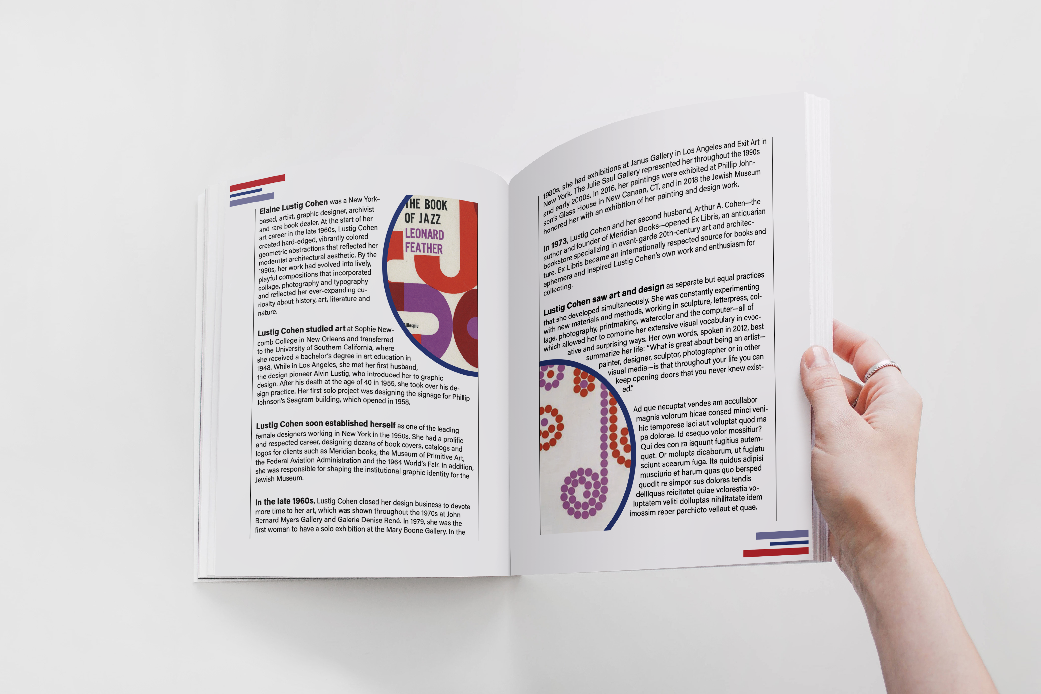 In order to properly convey Elaine Cohen's design style, images that were used