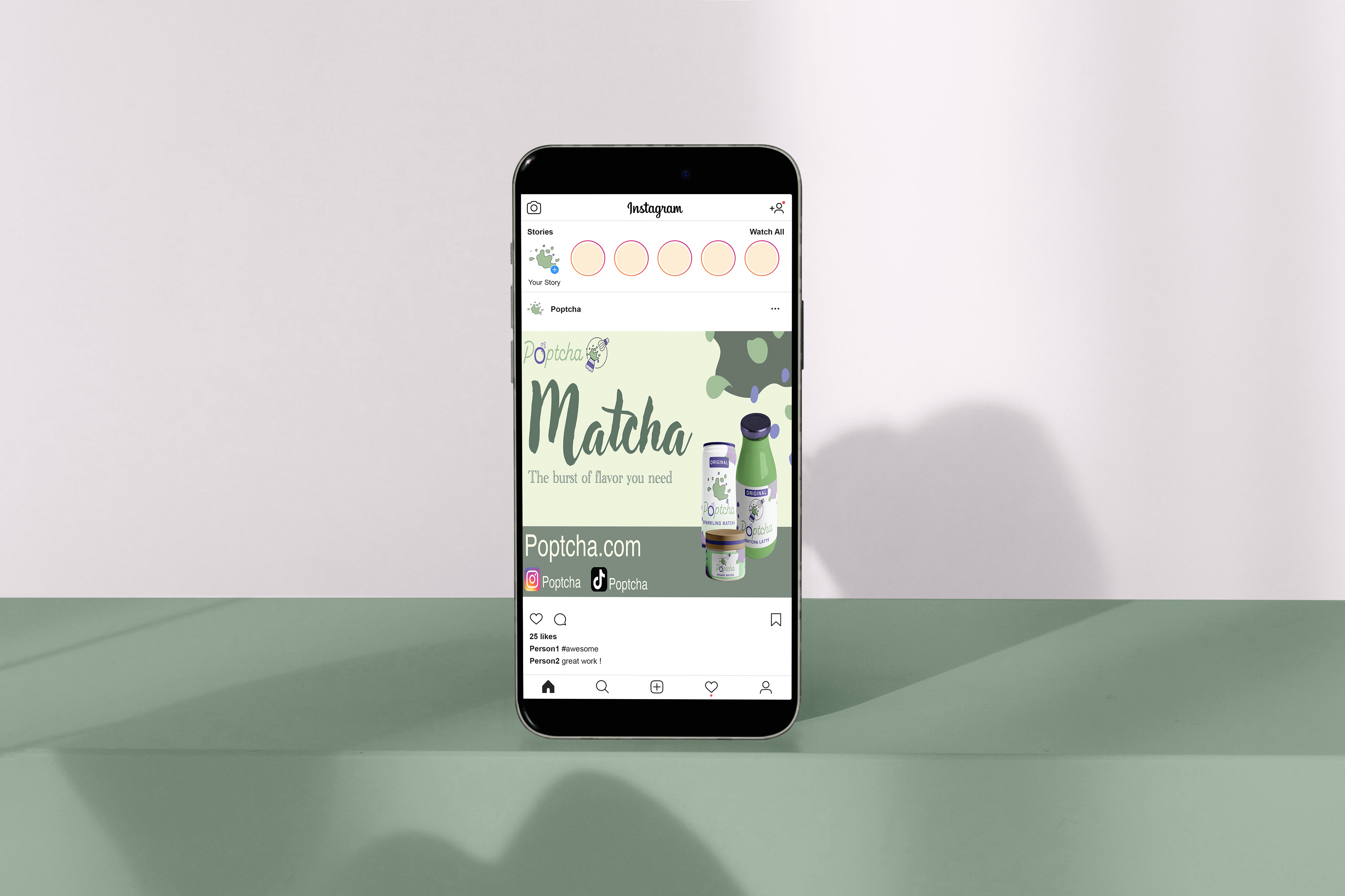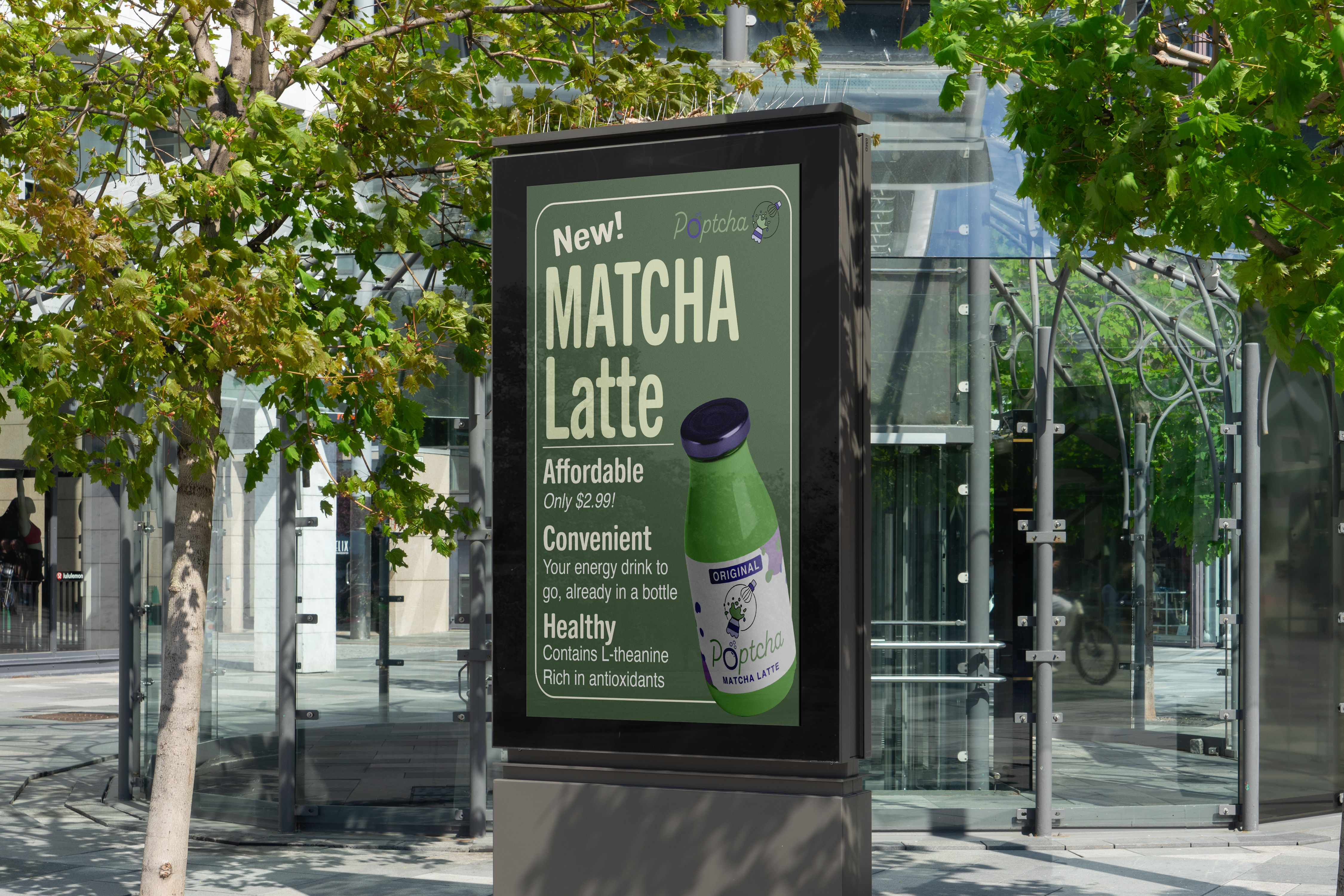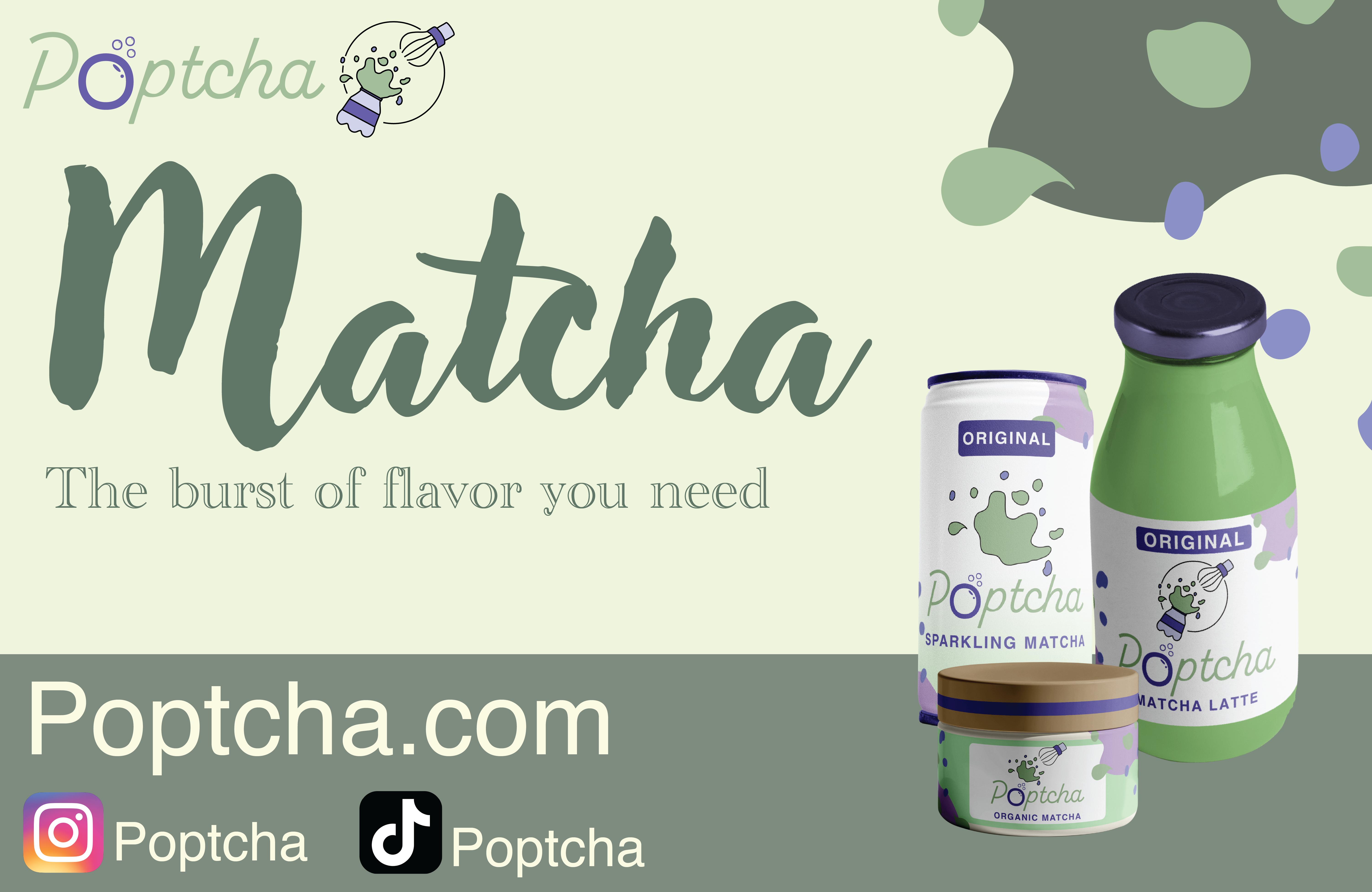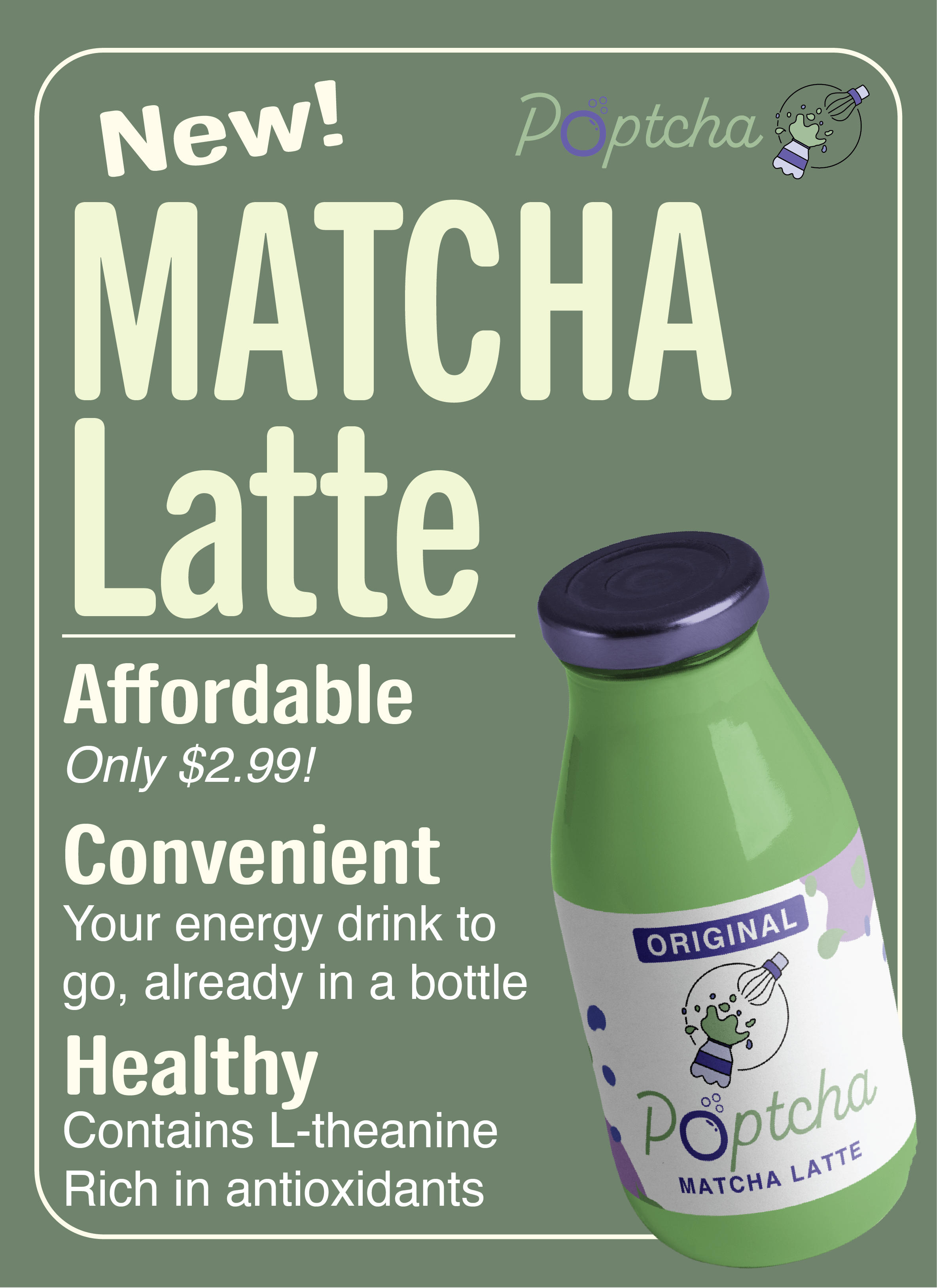 To advertise the brand, I created an informational poster that can be formatted according to the Matcha product being advertised. This poster can work as both a poster and a social media post. It adheres to the Matcha aesthetic that is trending, while also being informative about the benefits of the product.