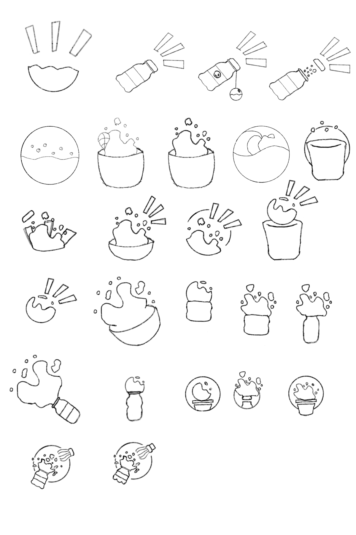 For the logo, I tried sketcing various iterations that represented the brand's name, and ideation of the fun exploding flavors of their matcha products. It was a long run of trial and error, as I bounced around from putting too much and too little detail.