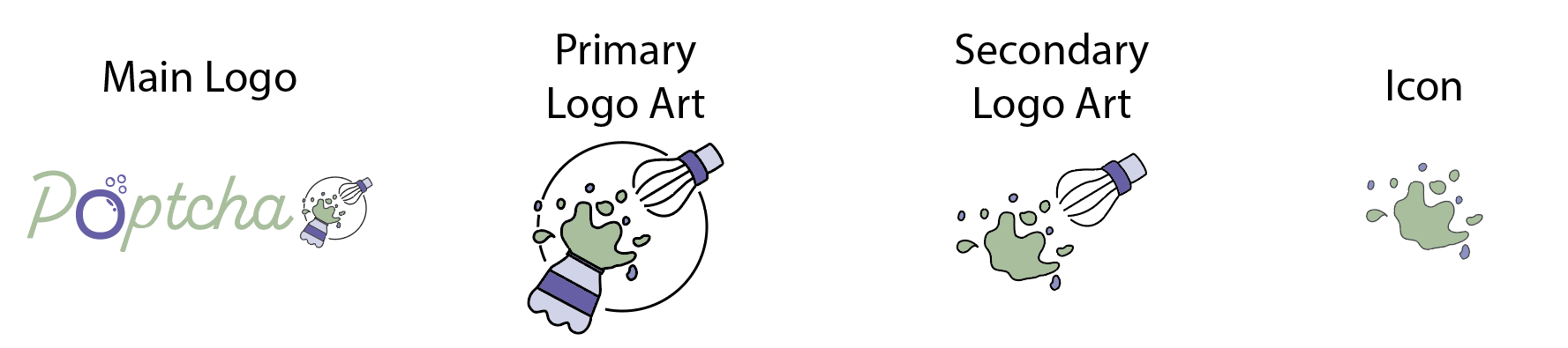I wanted to make sure that both the logo name and design were able to stand out on their own, while still looking cohesive together. For the text, I used and edited the font Alkaline, while also changing the 'o' in Poptcha to look like a bubble, symbolizing the 'pop' in the name.